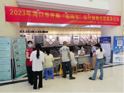 团委组织心血管内科、康复医学科、口腔医学中心等科室的青年医师,在海甸门诊开展“医师节”义诊志愿服务活动。