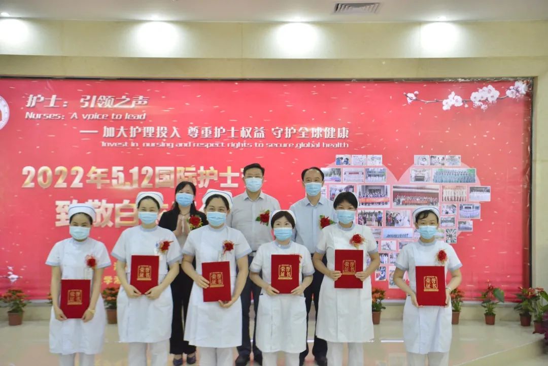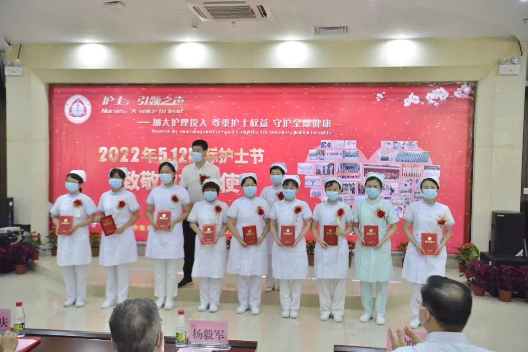 获奖名单分别为:2022年“天使在身边,共筑健康梦”手机摄影大赛获奖集体、2022年首届动脉血气标准化采集竞赛获奖个人、2021年度优秀护士、2021年度先进教师、2021年度护理管理奖、表彰支援三亚疫情防控医疗队代表、2021年度开展新技术新项目先进科室、2021年度护理管理创新奖、2021年度完成指令性任务先进科室、2021年度护理综合质量管理先进科室、2021年度临床护理工作30年贡献奖。