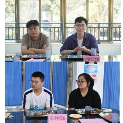 在边吃边聊的轻松氛围中,同学们依次提出相关问题和对医院的建设性意见。此次午餐会同学们主要围绕住宿条件、专业教学、餐饮服务、考前参考书籍准备、备考假期申请、住培学员绩效发放时间、入科接诊流程教学、入院电子医嘱系统教学、实验动物房建设、研究生食堂餐补、研究生医疗保险等方面提出了建议,积极地为医院发展建言献策。
