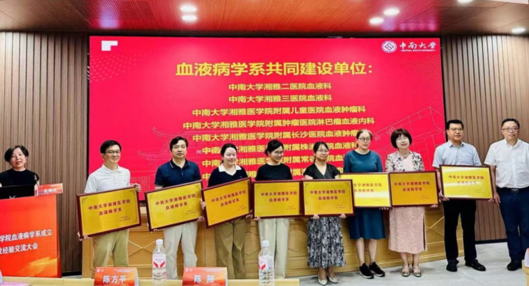 8月9日,中南大学湘雅医学院血液病学系正式成立。会议由武明花常务副院长主持,陈翔副校长致辞并授牌,北京大学人民医院黄晓军院士、苏州大学吴德沛、华中科技大学胡豫、北京大学人民医院张晓辉、中国科学院血液病医院肖志坚、北京大学人民医院江倩等教授线上祝贺。