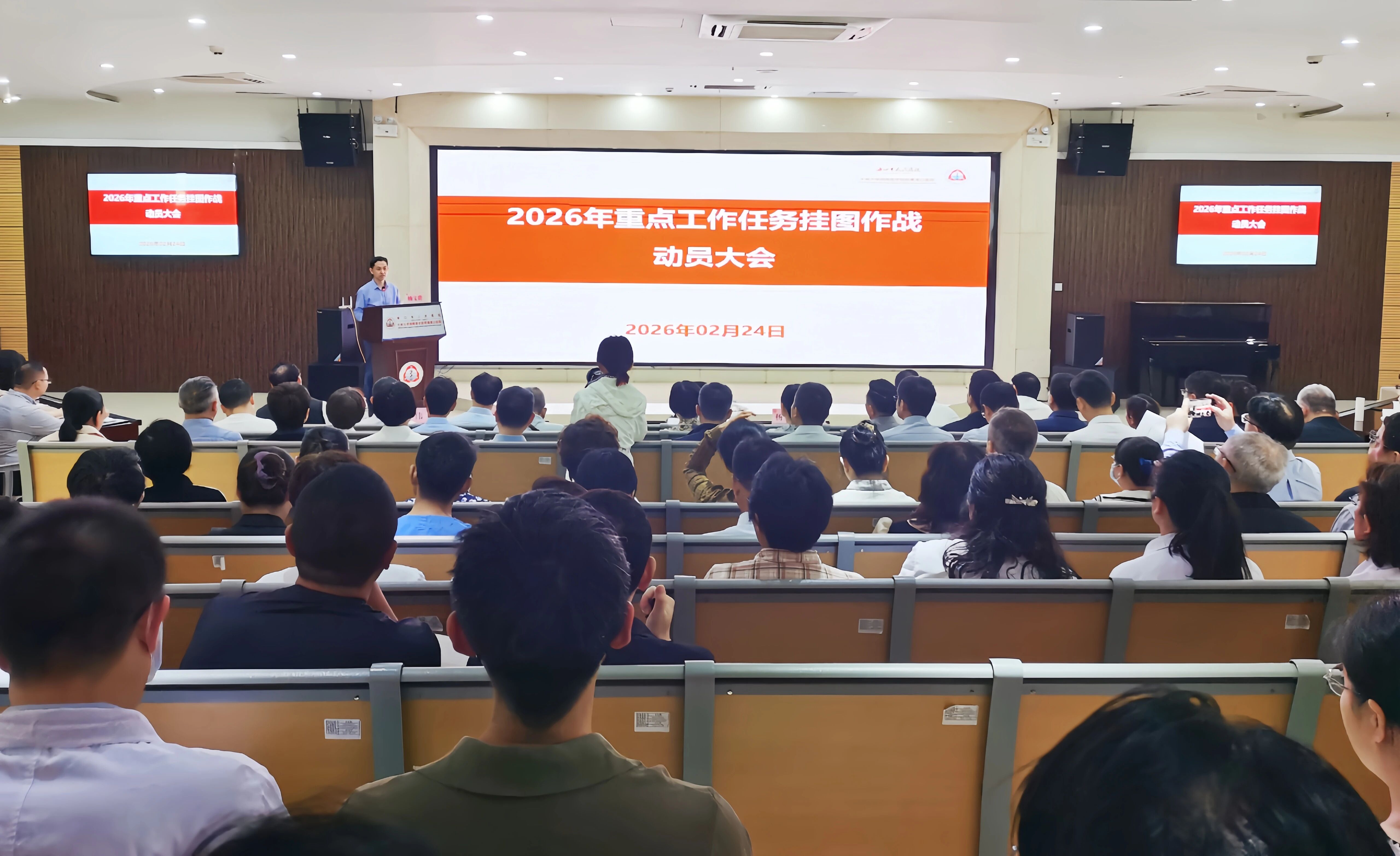 2月24日(正月初八)上午,德州扑克在线网 召开2026年重点工作任务挂图作战动员大会,旨在全面部署新一年度重点工作,动员全院上下进一步统一思想、明确目标、压实责任,以“开局即决战、起步即冲刺”的奋斗姿态,确保年度各项重点工作落地见效,全力推动医院高质量发展。医院领导班子成员、全体中层干部、全体博士及正高职称人员参加会议。会议由副院长王加充主持。