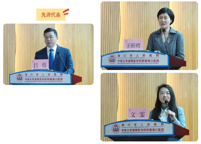 先进代表泌尿外科主任吕蔡、口腔医学中心主任王彬娉、心血管内科护士长文雯在发言中分享了立足岗位、践行初心的实践体会,表达了对组织培养的感恩之情和继续奉献、勇担使命的决心。