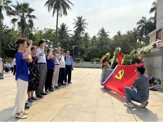 4月4日,离退休党支部在职党员和退休党员代表来到海口市人民公园“海南革命烈士纪念碑”前,开展2023年“清明祭英烈”主题党日活动,深切缅怀革命先烈,传承红色基因。通过敬献鲜花、向烈士三鞠躬、重温入党誓词等系列活动,向革命烈士们表达崇敬之心、感念之情、传承之志。