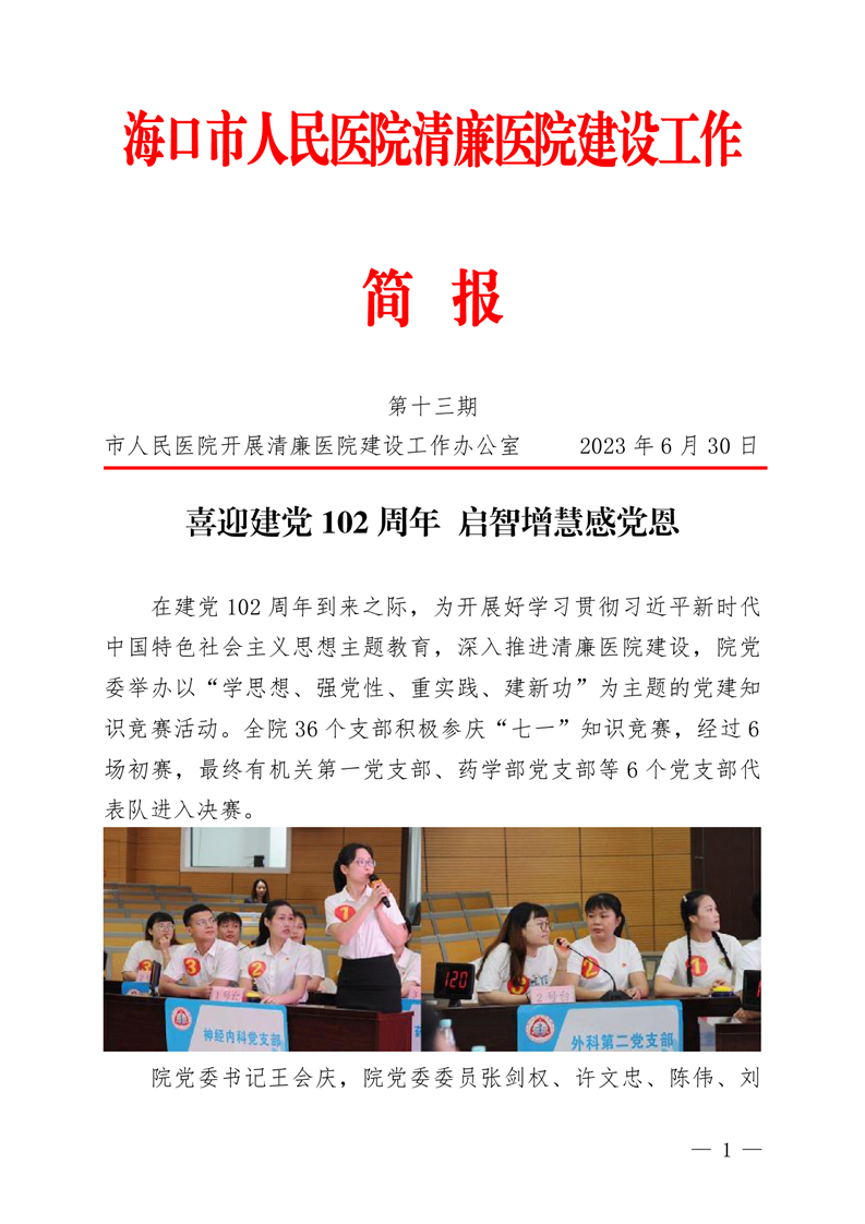 德州扑克在线网 清廉医院建设工作简报(第十三期)