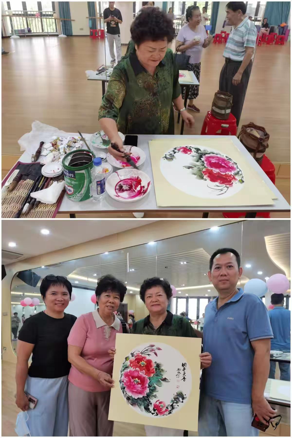 蔡凯玲老师现场与老同志们进行书画分享交流。