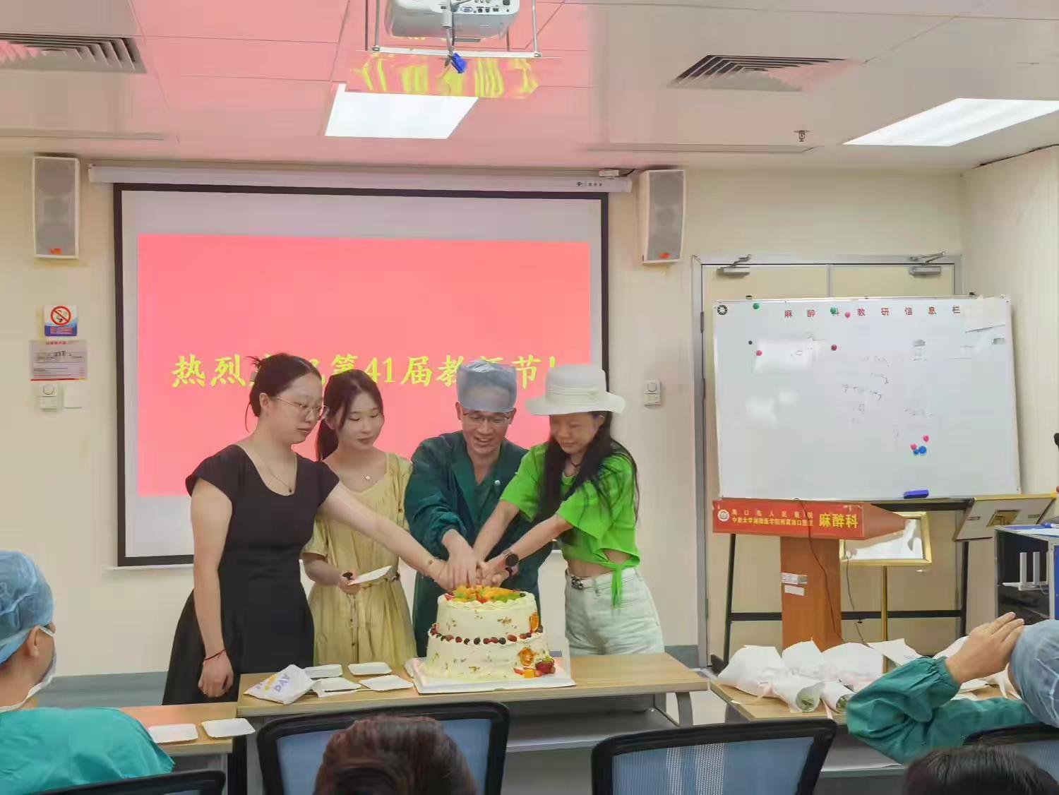 科室为老师们定制了写有“教师节快乐”的专属节日蛋糕。在欢乐的生日歌旋律中,各位导师一同切下蛋糕,分享这份甜蜜与喜悦。大家一边品尝美味的茶点,一边自由交流,畅谈工作与生活,其乐融融。
